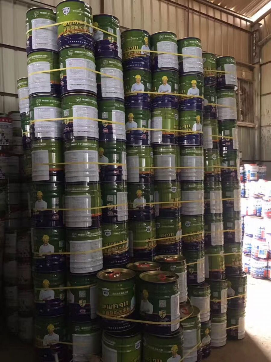 耐卡911聚氨酯防水涂料属高分子化学反应型防水涂料。它是由含异氰酸酯基(-NCO)的聚氨酯预聚体(甲组份)和含有多羟基(-OH)固化体为主的填充剂以及增塑剂、增粘剂、防霉剂、稀释剂等助剂的混合物(乙组份)组成。双组份按一定比例混合均匀,经过固化后形成均匀的、富有弹性的整体防水胶膜。